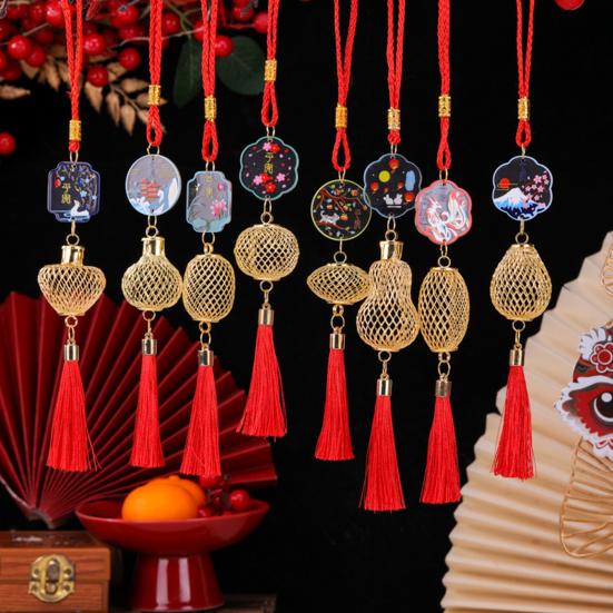 Celebrate the New Year with this exquisite new year pendant, a versatile decoration perfect for doors, windows, desks, and car interiors. Crafted with high-end metal hollow lantern and gourd designs, complemented by elegant tassels and finely detailed hanging tags, it offers a sophisticated alternative to ordinary plastic ornaments.