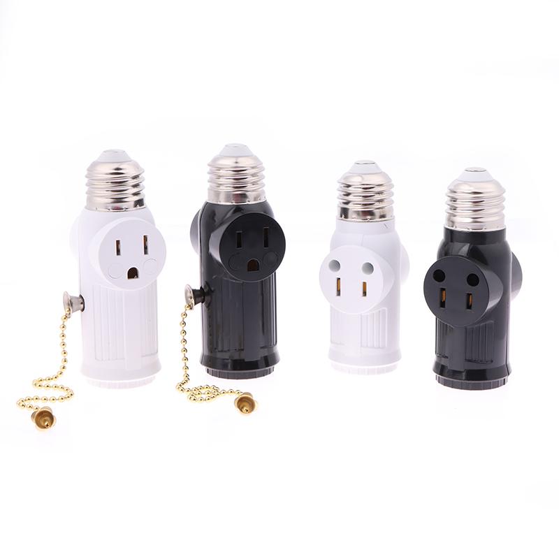 White Black US Power Plug To E26 To US Bulb Adapter Lamp Holder Base Socket Light Pull Chain Switch America Conversion