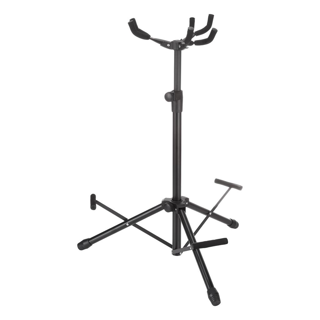uxcell Triple Guitar Adjustable Stand for and Bass Folding Black Stand, Floor-Mounted, Multi-Guitar Electric, Acoustic, Guitars, Tripod,