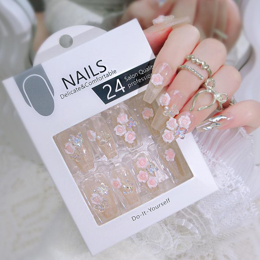 Unghii Medii Coffin Presate cu Designuri cu Strasuri Reutilizabile Acoperire Completă Adeziv pe Unghii False Presate Unghii Artificiale False Unghii Autocolante pentru Femei