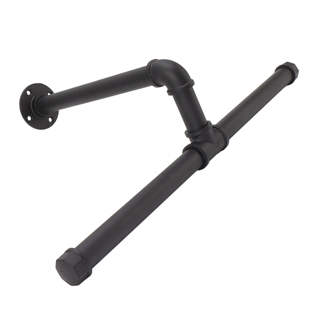 Wall Mount Clothes Rack Floating Iron Pipe Coat Hat Rack Multifunctional Clothing Hanger Black
