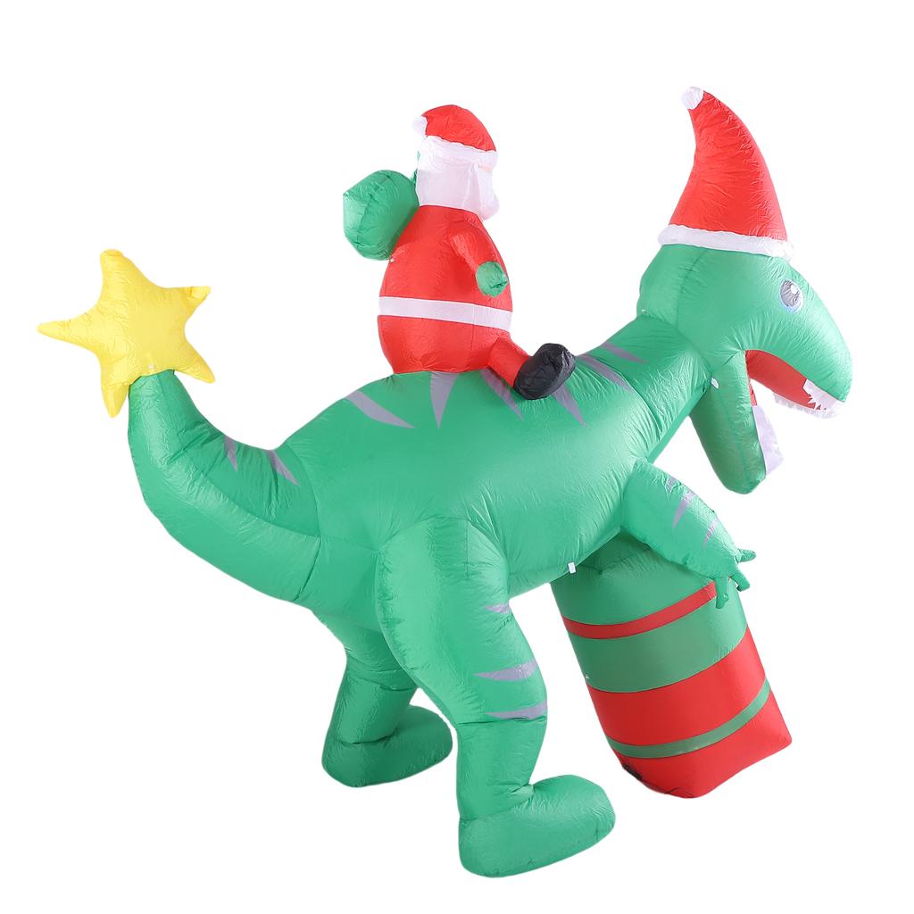 5.9FT Inflatable Father Xmas Ride On Dinosaur IP44 Water Proof Blow Up Xmas Yard Decoration for Home Outdoor Party US