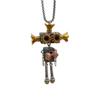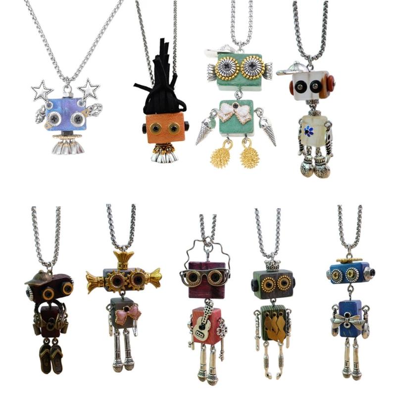 Wood Block Robot Pendant Necklace Adjustable Length Punk Neckchain Stylish Leather Cord Accessory Fade Resistant Chokers