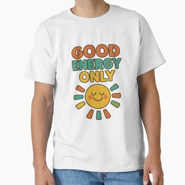 Men Casual Shirts Short Sleeves Good Energy Only White Tees Oversized T-shirts