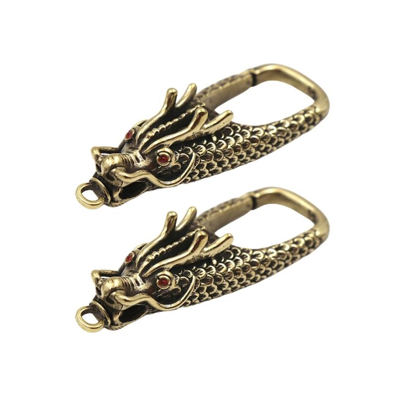 Set of 2 Dragon Head Keychain Solid Brass Carabiner Clip Key Holder Bag Charm Unisex Jewelry Making Accessories