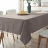 Culoare Solidă Bumbac Spălat Margine cu Gogoși Față de Masă Minimalistă pentru Masă de Dining, Măsuță TV, Față de Masă, Rezistentă la Praf, Antiderapantă, Pânză de Birou