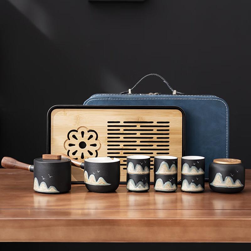 Portable Ceramic Kung Fu Travel Tea Set with Tea Tray