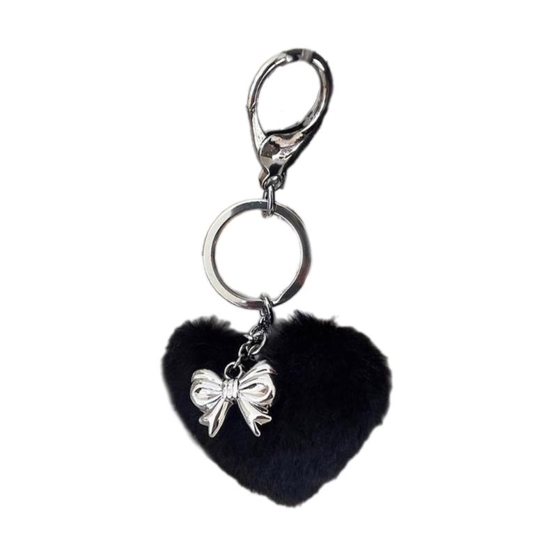 Delicate Bowknot Pendant Keychain Plush Heart Shape Keyring Stylish Phone Antilost Lanyard Decorations for Bag Backpack