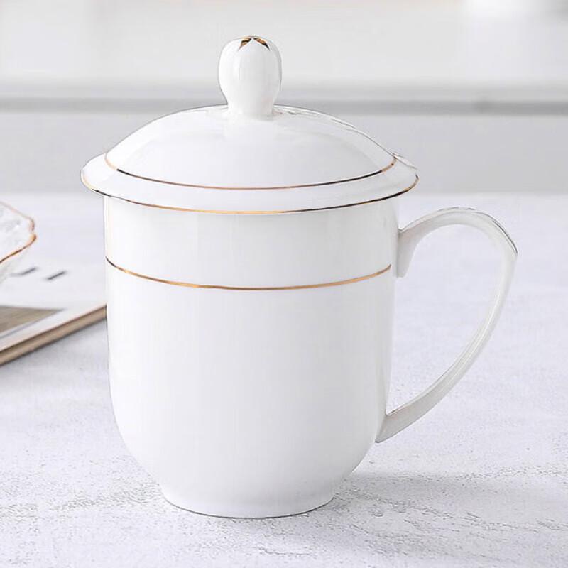 Bone China Teacups with Lid & Gold Rim, 350ml (4-Pack)