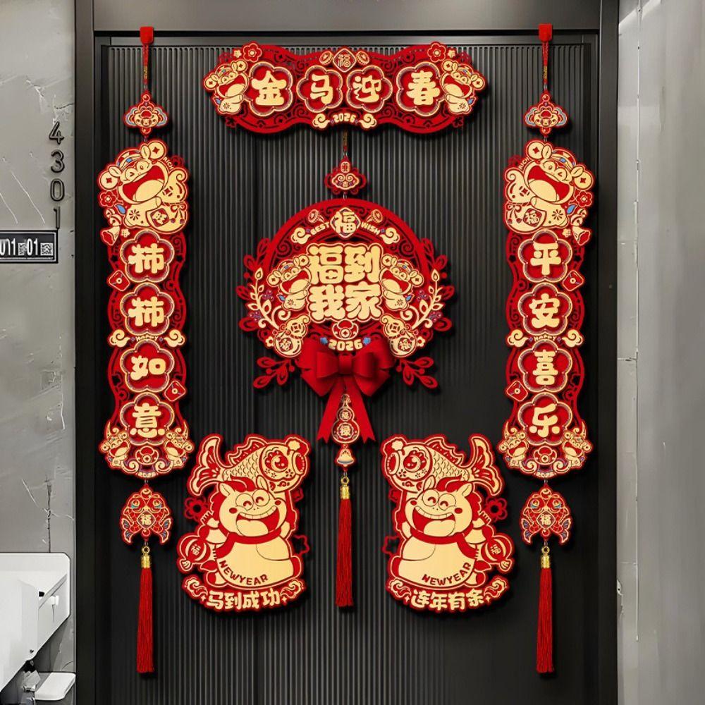 Wall Hanging Horse Year Couplet Flocking Design Door Stickers Festival Supply Chinese New Year