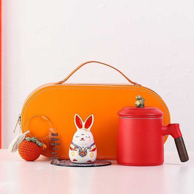 Auspicious Jade Rabbit Ceramic Tea Cup Gift Set