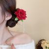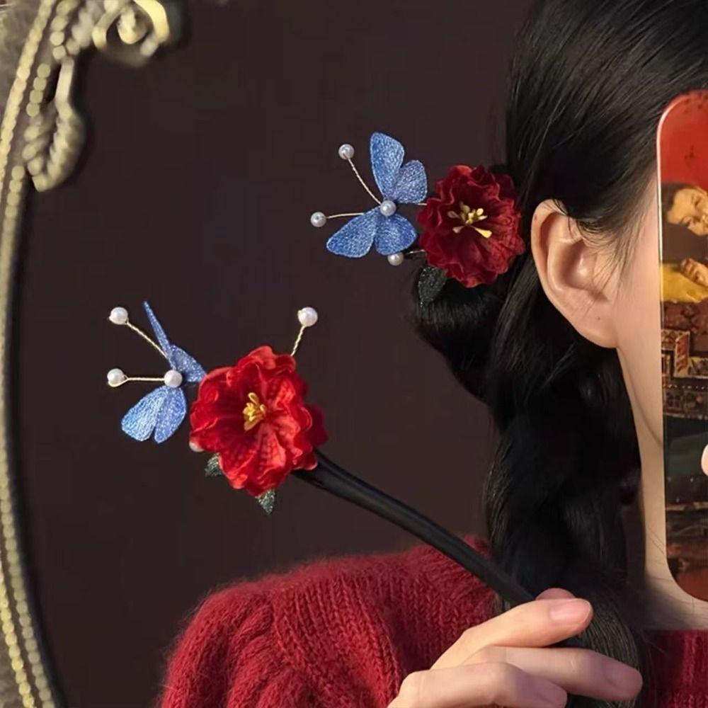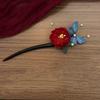 Pearl Wooden Hair Stick Tassel Hanfu Hairpin Classical Red Flower Hair Clip Hair Chopstick