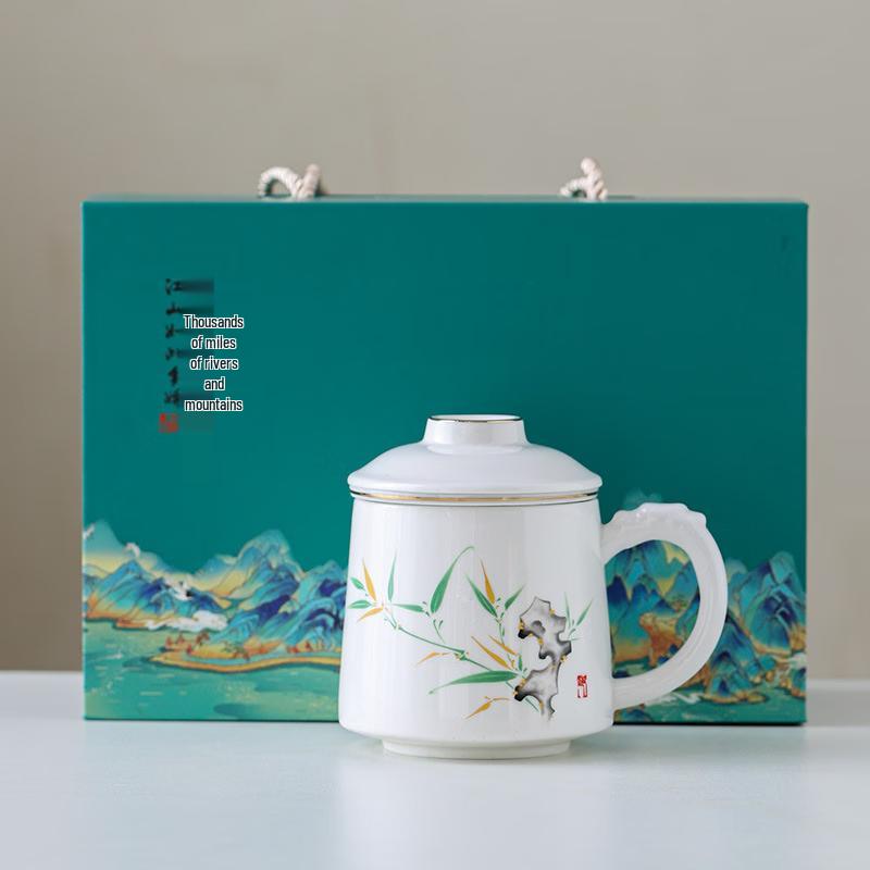 Haofeng Ceramic Tea Infuser Mug, Green Bamboo Design