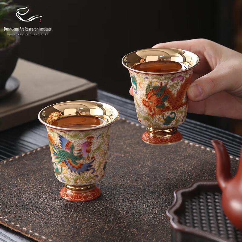 Dunhuang Art Gilded Dragon & Phoenix Couple Tea Cups Gift Set