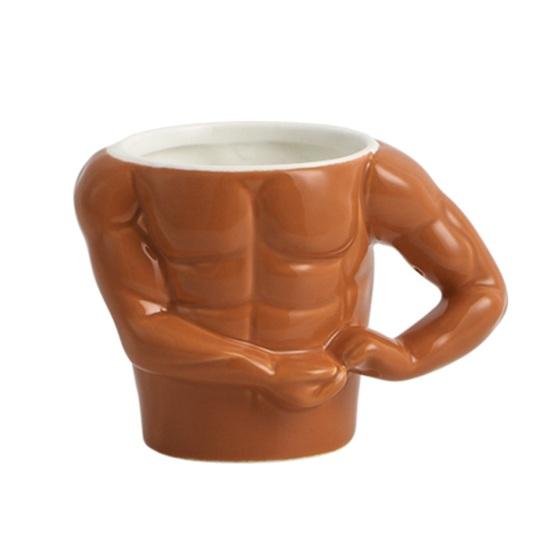 Yousheng Funny Coffee Mug Novelty Muscle Man Shaped Mug Novelty Ceramic Cup with Spoon Birthday Christmas Gifts for Muscle Lovers
