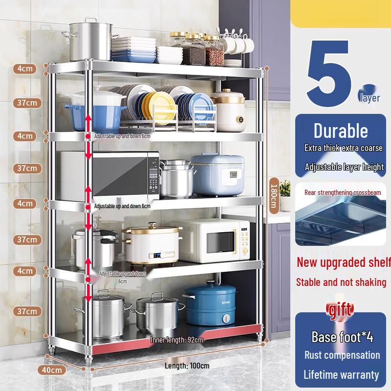 Heavy-Duty 5-Tier Stainless Steel Kitchen Storage Rack
