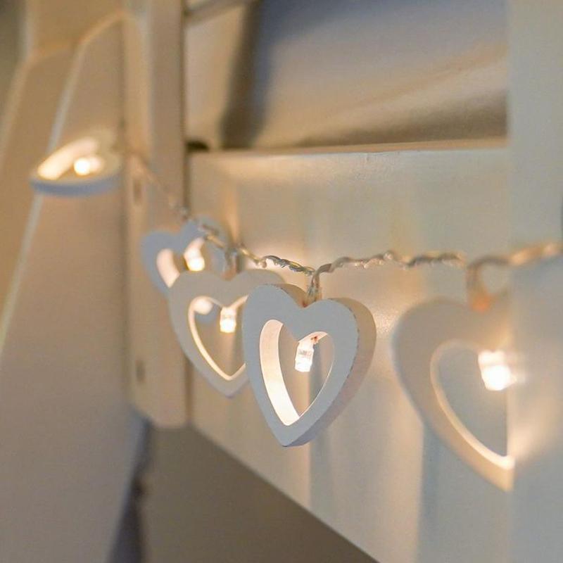 10LED Wooden Love Heart Warm Indoor Fairy String Wire Lights Valentine's Day
