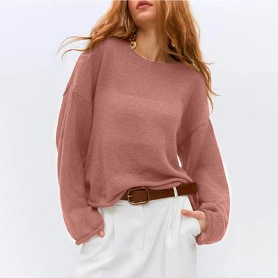 Spring Hollow Round Neck Thin Sweater Knitted Top For Women