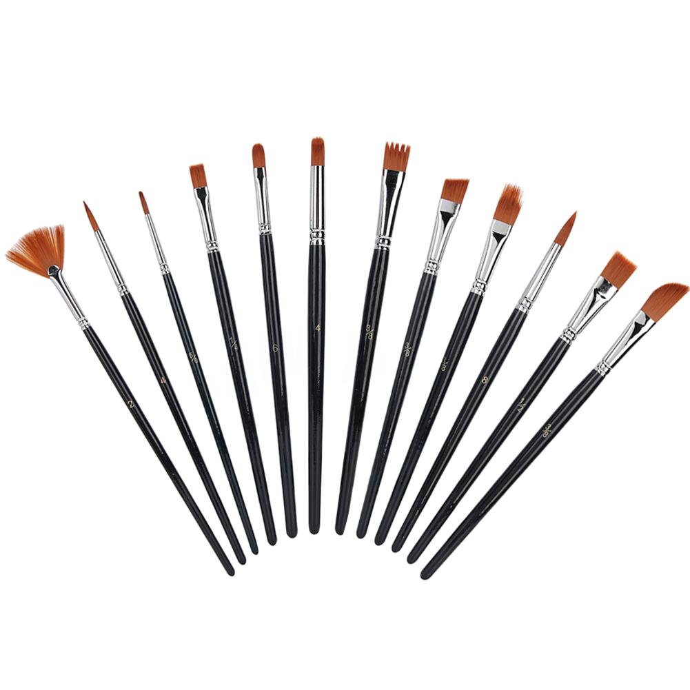 12pcs Nylon Hair Drawing Brush Various Specification Short Rod Drawing Pens for Gouache Oil Painting