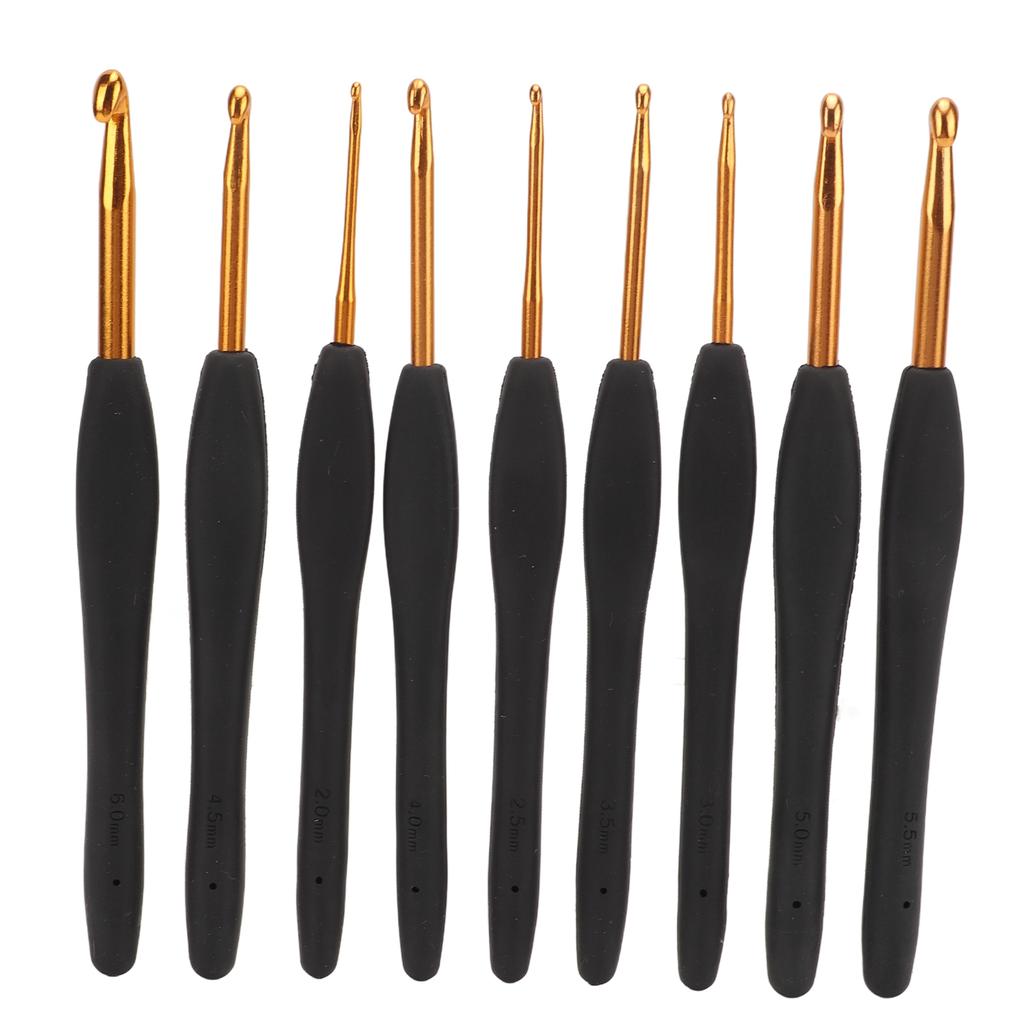 9Pcs Crochet Hooks Black Handle Design Easy Identification Portable Knitting Needles with Crochet Bag