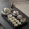 Wo Ding Blue and White Ru Kiln Tea Set with Walnut Tray