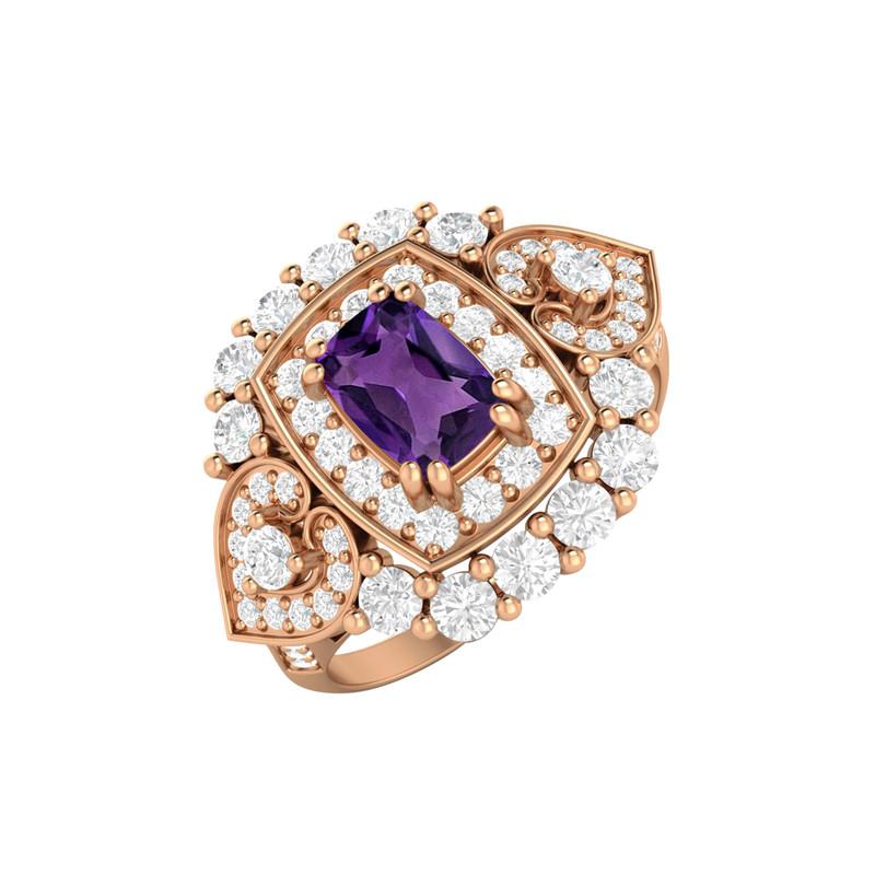 6X4MM Cushion Amethyst Gemstone 925 Sterling Silver Rose Plated Solitaire Halo Women Engagement Ring
