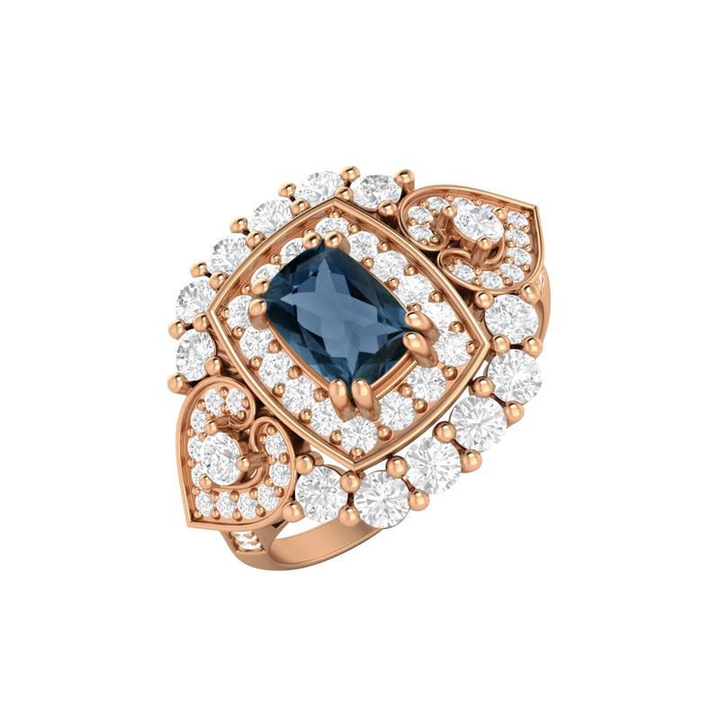Gemstone Details: Main Stone 6X4MM Cushion Shape London Blue Topaz .Total Carat Weight is 3.30 ctw.