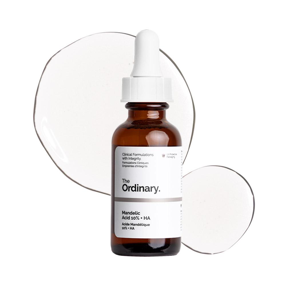 Mandelic Acid 10% + HA is an Alpha Hydroxy Acid serum that helps improve the look of skin clarity by balancing uneven skin tone, and correcting the look and feel of skin texture in a gentle, yet effective manner. This is because it has a larger molecular weight than other alpha hydroxy acids, which results in a slower, more balanced distribution.