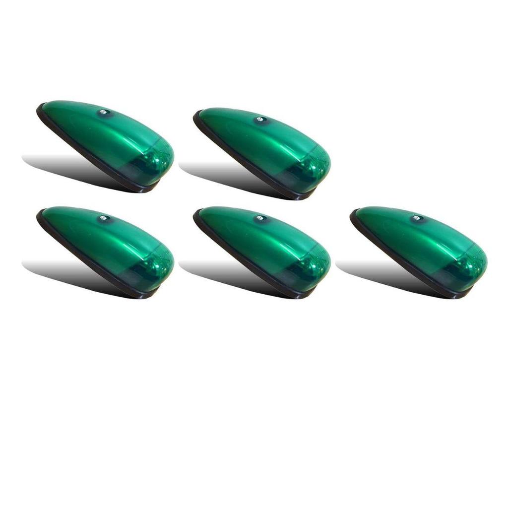 Set of 5 ultra-bright Green teardrop-style marker lights designed for roof running and decorative applications. Built with a waterproof PMMA lens and long-life bulbs, these marker lights are ideal for heavy-duty trucks, trailers, tractors, and commercial vehicles.