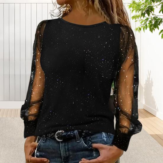 Stylish Mesh Hollow Puff Sleeves: Featuring unique mesh hollow puff long sleeves with covered cuffs, this top combines elegance with modern fashion. The delicate sleeve design adds a touch of sophistication while highlighting your arm gracefully.