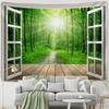 Fereastra Woods View Tapiserie suspendată pe perete Pătură din poliester Psihedelic Hippie Boho Style Decor camera de zi