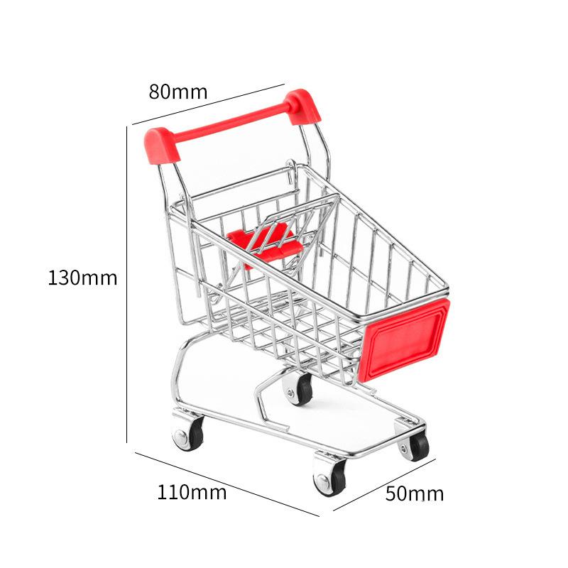 Model Mini Cărucior de Cumpărături Simulat pentru Copii Cărucior de Mână Model Metalic Mașină de Depozitare Ornament de Depozitare Multifuncțional de Birou Model