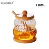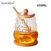 KEMORELA Honey Jar with Spoon and Sealing Lid 330/450ML Glass Honey Jar with Wooden Honey Spoon Tray Sealed Syrup Dispenser