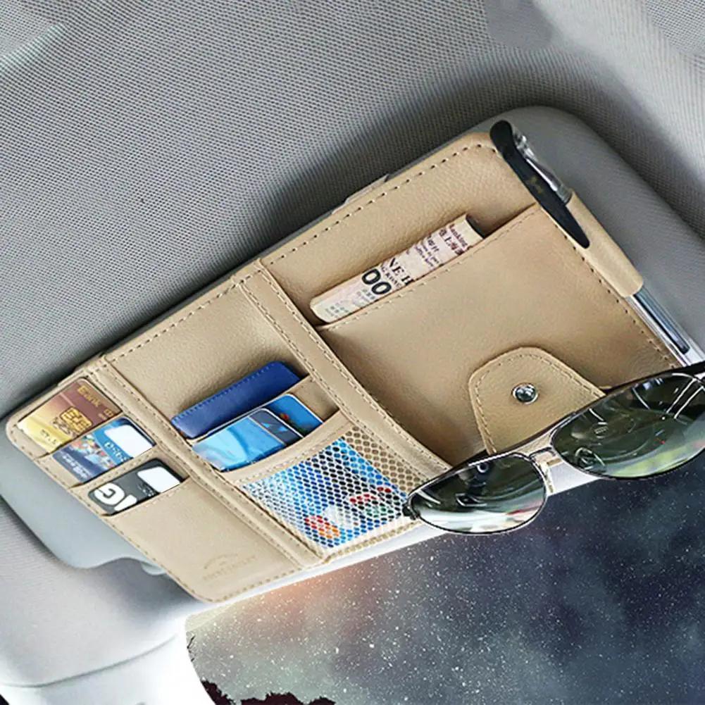 Car Sun Visor Organizer Multi-Pocket Business Card Storage Management Sunglasses Holder Visor Auto Interior Accessories
