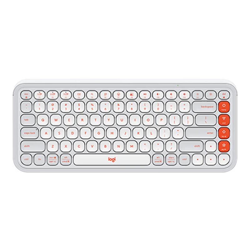 The Logitech POP ICON KEYS is a portable Bluetooth wireless keyboard designed for office use and AI applications. It features multi-system compatibility, connects up to 3 devices simultaneously, and has 81-90 membrane keys. This white variant does not include a Logi Bolt receiver and is powered by dry batteries.