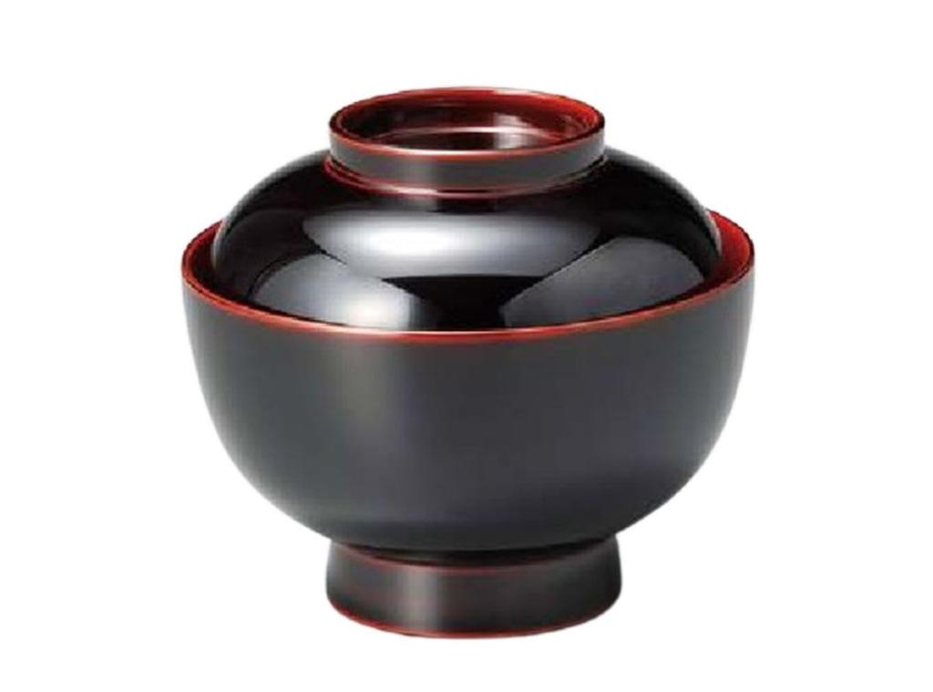J-Kitchens Plain Zoni Bowl (Can Also Be Used as a Plate or Small Bowl) with Red Interior (1 Bowl) 13cm, Hand-Painted Lacquer, Made in Japan