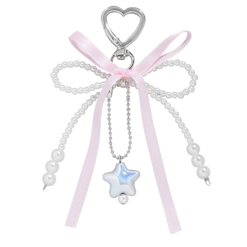 Stylish Love Heart Pendant Bowknot Keychain Accessory Stylish Key Holder for Women Sturdy Alloy Car Key Pendant