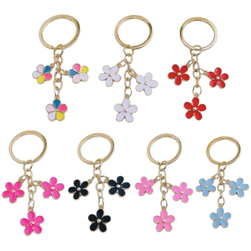 Eelgant Floral Keychain For Women Colorful Flower Keyring Pendant Alloy Key Holder Girls Bag Charm Accessories Gift