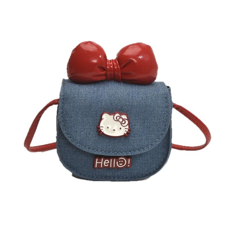 This product is a Hello Kitty-themed children's denim messenger bag, which belongs to the category of childlike accessories. The core characteristics are as follows: