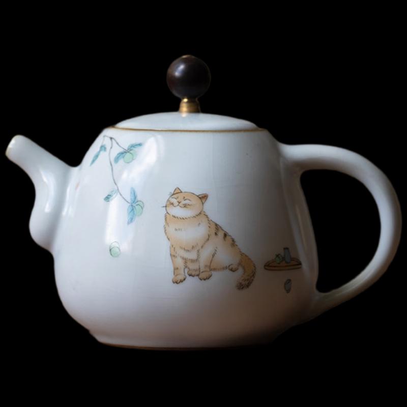 Shangqi Cute Cat Ru Ware Ceramic Teapot