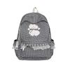 Kawaii Checkered Nylon Backpack with Fluffy Poodle Embroidery Sweet Style Women's School & Daily Bag