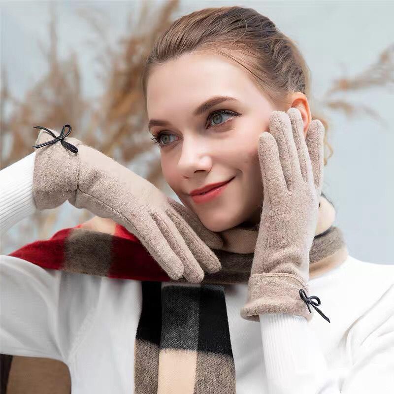 Gloves women's autumn and winter cute velvet thickened warm cashmere five fingers