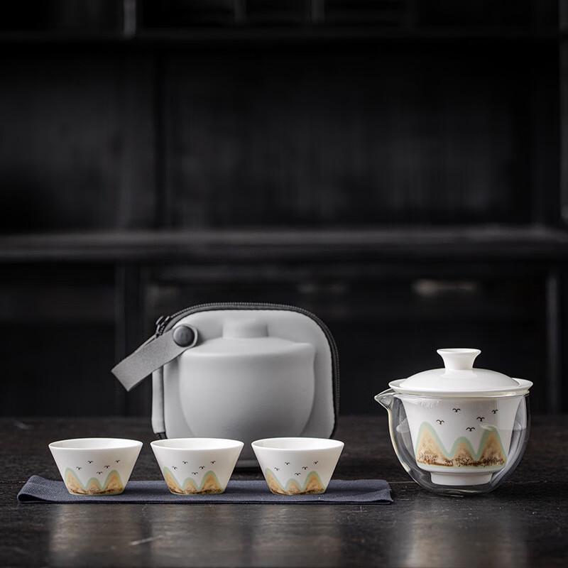 Janla Portable Mutton-Fat Jade Porcelain Gaiwan Tea Set