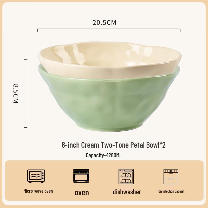 ZISIZ Cream Style Ceramic Noodle Bowl Set, 8-inch