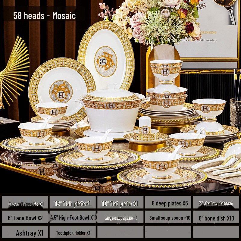 Zhishi 58-Piece Mosaic Bone China Dinnerware Set
