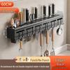 Punch-Free Space Aluminum Kitchen Utensil Rack with Hooks