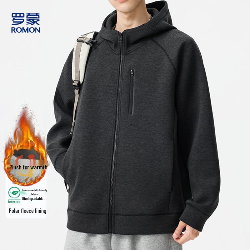ROMON Men's Fleece Lined Air Layer Hooded Cardigan Jacket