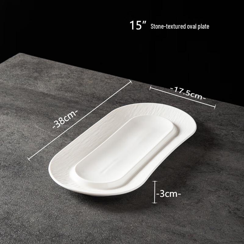 ZISIZ Underglaze Ceramic 15-inch Stone Scenery Oval Plate