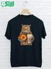 Men Black Print T-shirt Sophisticated Coffee Cat No-Cut Transfer Paper Print Cotton Tshirt
