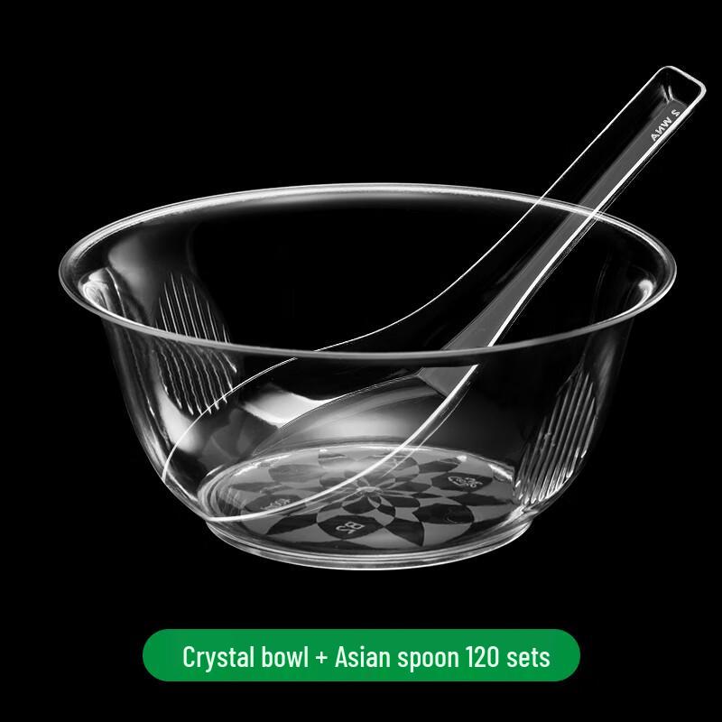 Beiyipin 400ml Disposable Plastic Crystal Bowl with Asian Spoons, 120 Sets